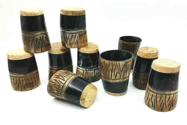 แก้วช็อตทำมือจากเขาสัตว์ธรรมชาติ ดีไซน์โบราณ เป็นมิตรกับสิ่งแวดล้อม คุณภาพส่งออก สำหรับดื่มสุราแบบศาสนา ลายหินอาเกตหมี
