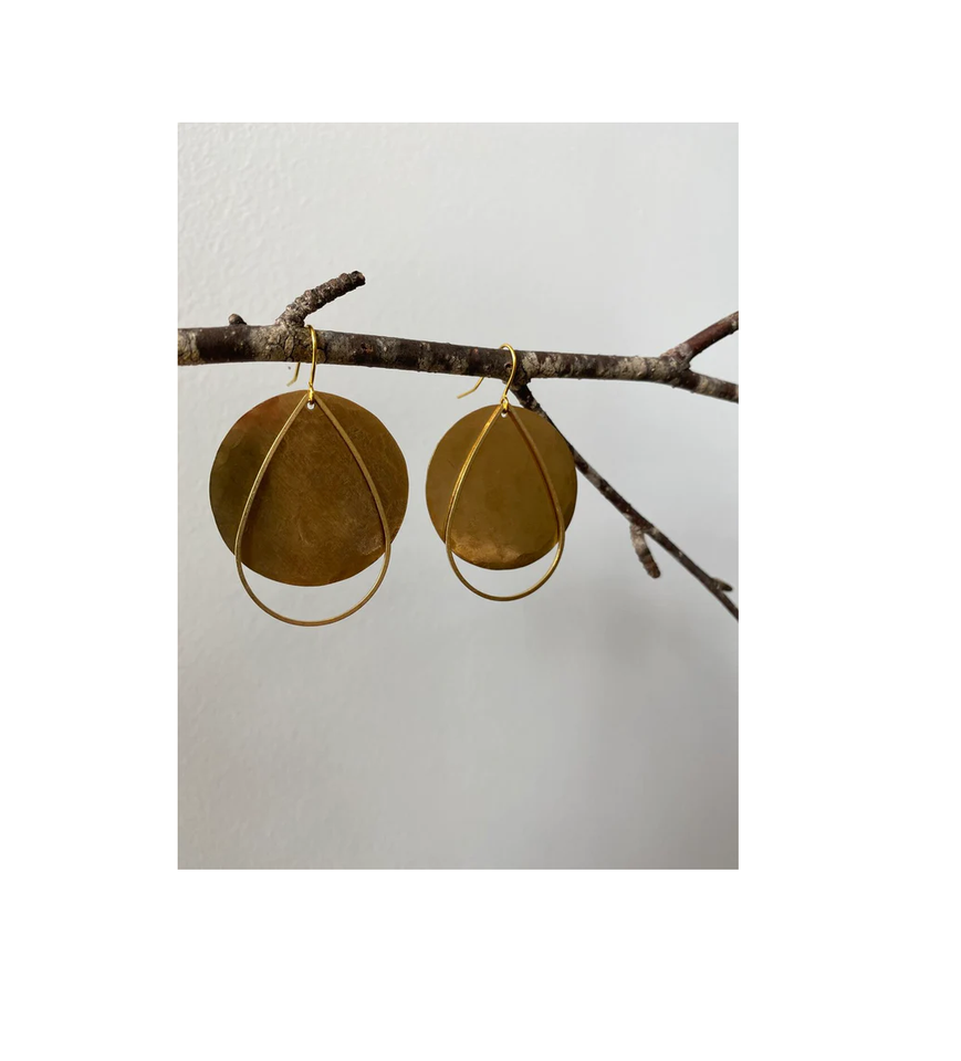 การออกแบบโบราณที่ทําด้วยมือทองเหลืองต่างหูห้อยต่างหูห่วงสําหรับผู้หญิงทองทองเหลืองเครื่องประดับชิ้น