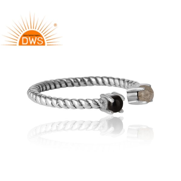 แหวนเงินแท้สไตล์อินเดียโบราณประดับลาบราดอไรต์และแบล็คออนิกซ์ แหวนพลอย ขายส่งเครื่องประดับ