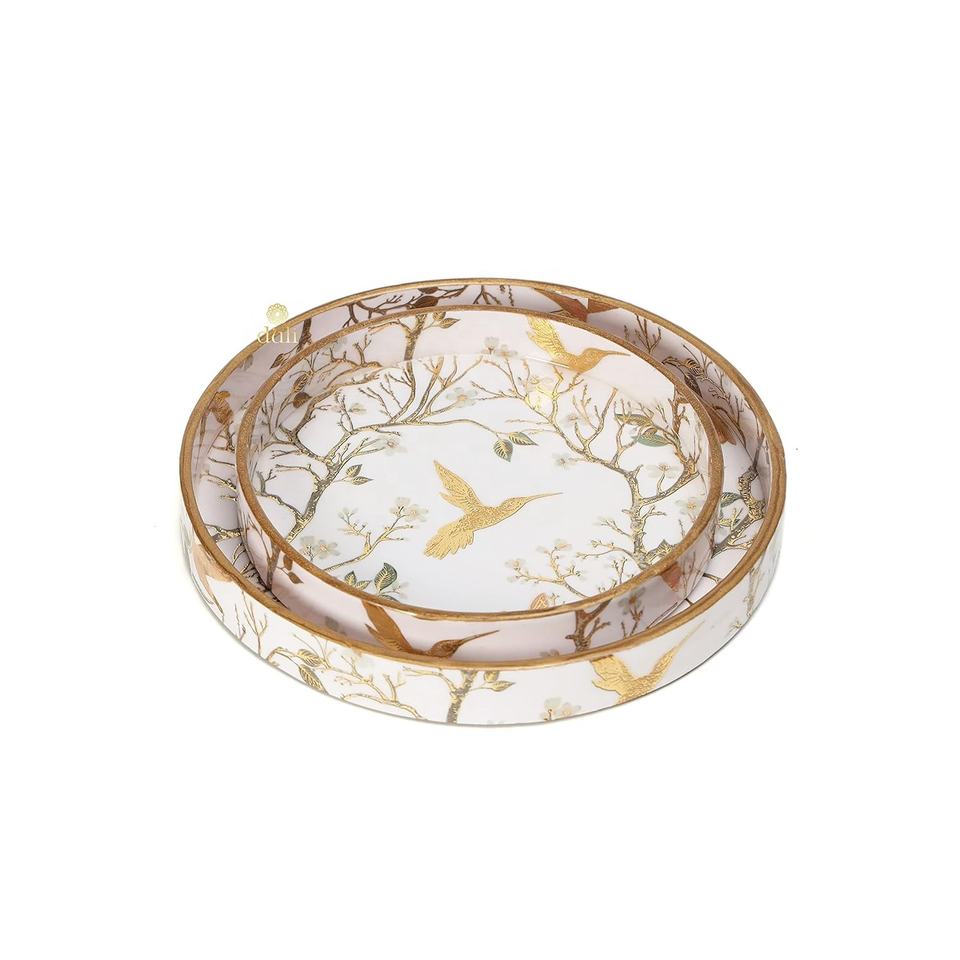 ถาดไม้ MDF ดีไซน์โบราณเคลือบเอนาเมล ถาดเสิร์ฟทรงกลม สำหรับครัวและห้องอาหาร ถาดเรซิ่นตกแต่ง ทำด้วยมือ สำหรับบ้านและโรงแรม