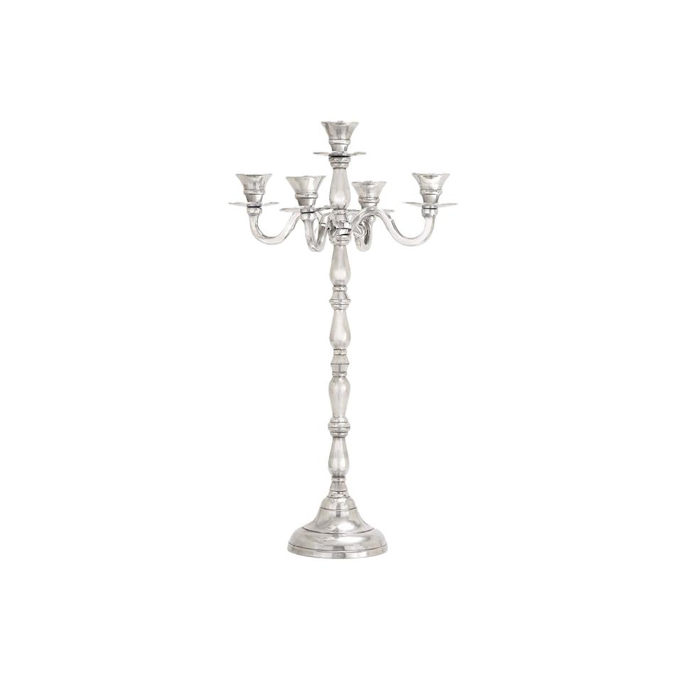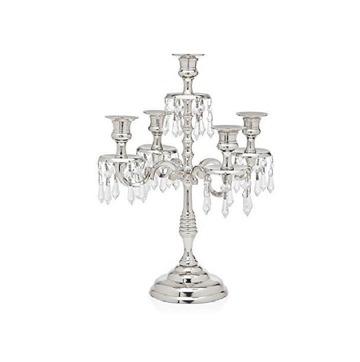 เชิงเทียนโลหะสีเงินพร้อมแขน5ชิ้นสำหรับงานปาร์ตี้ตกแต่งงานแต่งงานงานหัตถกรรมเชิงเทียน