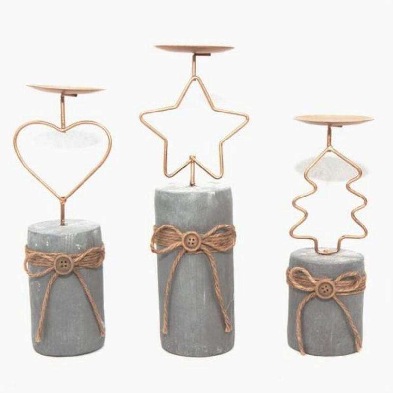 เชิงเทียนไม้โลหะ3ชิ้นสำหรับงานแต่งงานและคริสต์มาสเชิงเทียนดีไซน์โบราณรูปทรงดาว