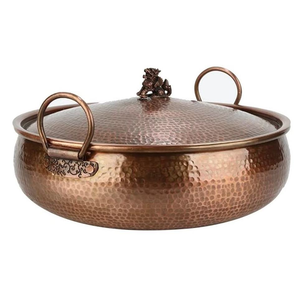 จานหม้อตุ๋นทองแดงแท้ดีไซน์โบราณพร้อมฝาปิดสำหรับหม้อร้อนที่ใช้ทำอาหารและเก็บอาหารในครัว