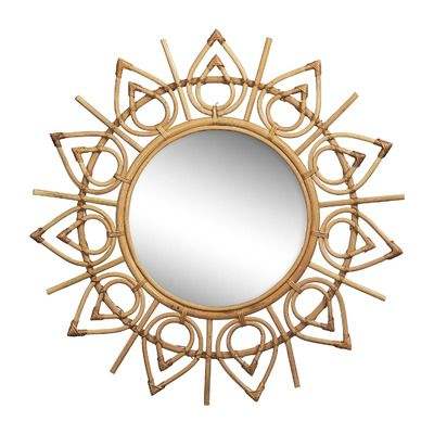 กระจกผนังทำจากหวายปอกระเจาดีไซน์โบราณกรอบกระจกตกแต่งโถงทางเดินกระจกหวายหรูหราติดผนัง