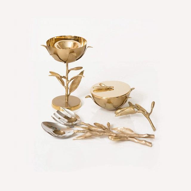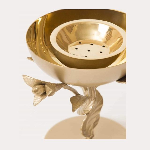 เครื่องหอมอราบิกสีทองดีไซน์โบราณพร้อมเซิร์ฟเวอร์ถั่วและช้อนส้อม