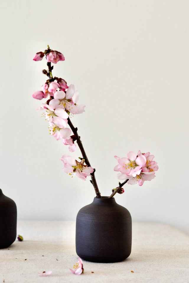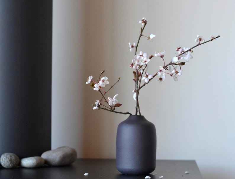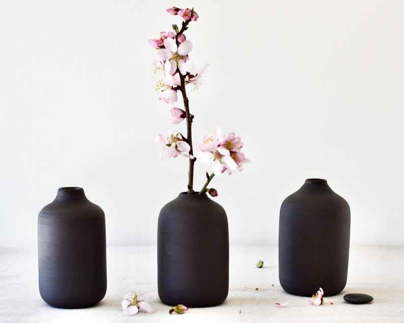 แจกันดอกไม้เซรามิกสีดำด้านทำมือ