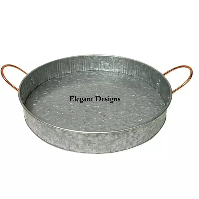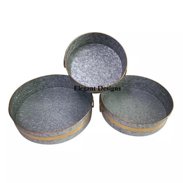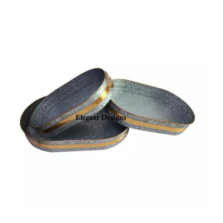 ชุดถาดเสิร์ฟกัลวาไนซ์ดีไซน์โบราณถาดเสิร์ฟโลหะทรงวงรีหรูหราทำด้วยมือถาดเสิร์ฟสามใบราคาไม่แพง