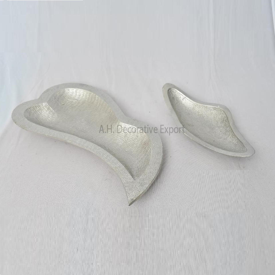 ถาดอลูมิเนียมออกแบบโบราณทรงกลมสีเงินสําเร็จรูปผลไม้และถาดเสิร์ฟสลัดพร้อมชุด 2 ชิ้นสําหรับถาดเสิร์ฟ