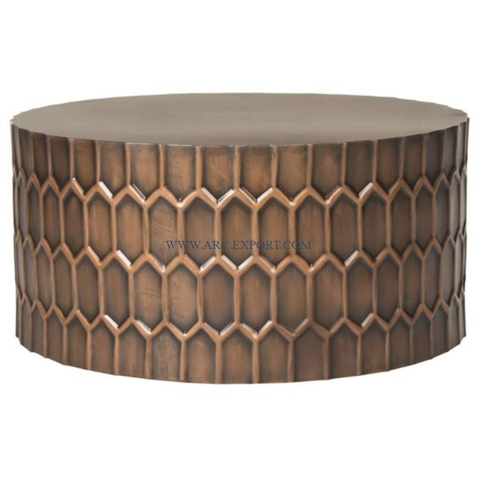 โต๊ะกาแฟทองเหลืองทรงกลมดีไซน์โบราณโต๊ะเฟอร์นิเจอร์ในบ้านกรอบกระจกขนาดใหญ่