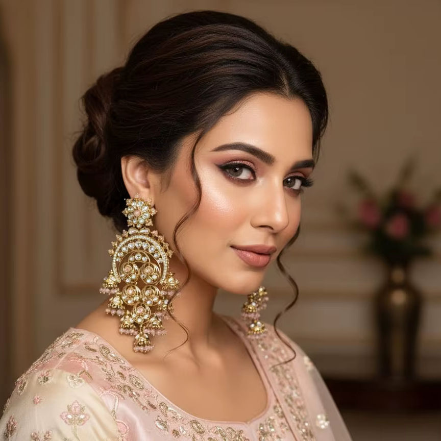 ต่างหูโบราณสีทองแบบดั้งเดิมเครื่องประดับอินเดียแบบดั้งเดิมชุดปาร์ตี้ต่างหูแบบห้อยสำหรับผู้หญิงและเด็กผู้หญิง
