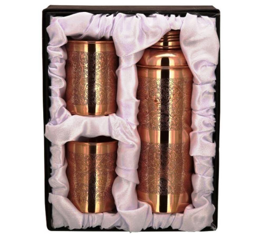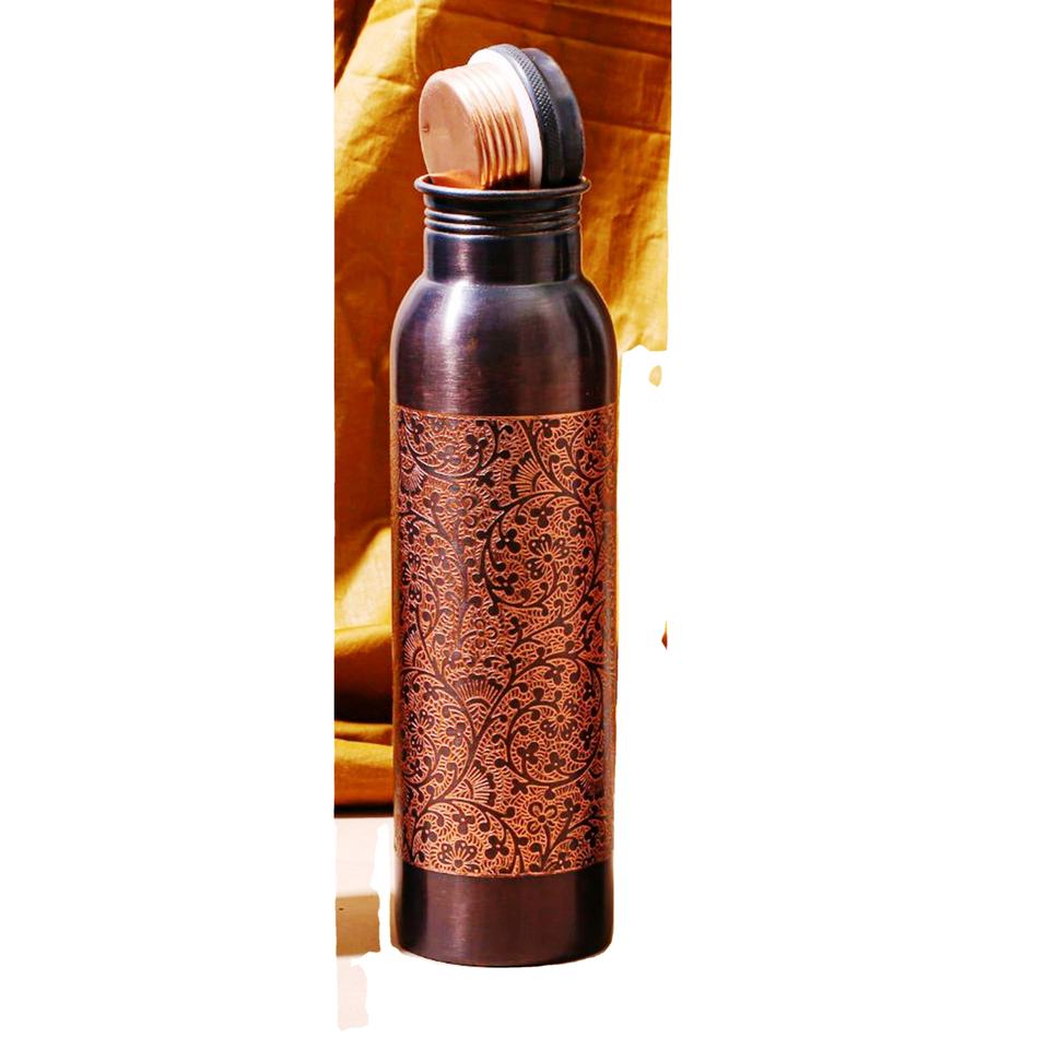 ขวดน้ำทองแดงสลักลายโบราณทำด้วยมือสินค้าอินเดียแฮนด์เมดของขวัญส่วนบุคคล