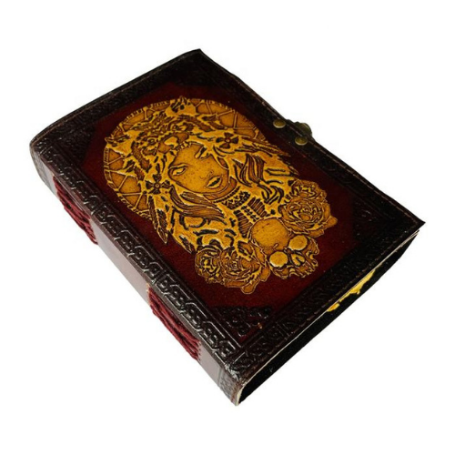 ลายนูนแนวโบราณของผู้หญิงหน้ากากเสือดีไซน์สมุดสมุดปกโลหะสีเหลืองปกแข็งแฮนด์เมดตกแต่งกระดาษอ่านหนังสือคลาสสิก