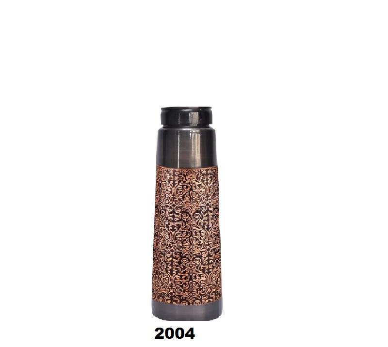 ขวดทองแดงบริสุทธิ์ลายนูนแบบโบราณสีดำดีไซน์ทำด้วยมือเพื่อประโยชน์ของอายุรเวท