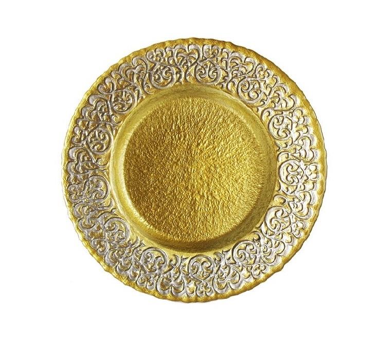 จานรองอาหารเคลือบลายใบไม้สีทองขอบทองโบราณ ผลิตด้วยมือ เป็นมิตรกับสิ่งแวดล้อม หรูหรา ใช้แล้วทิ้ง สำหรับครัว