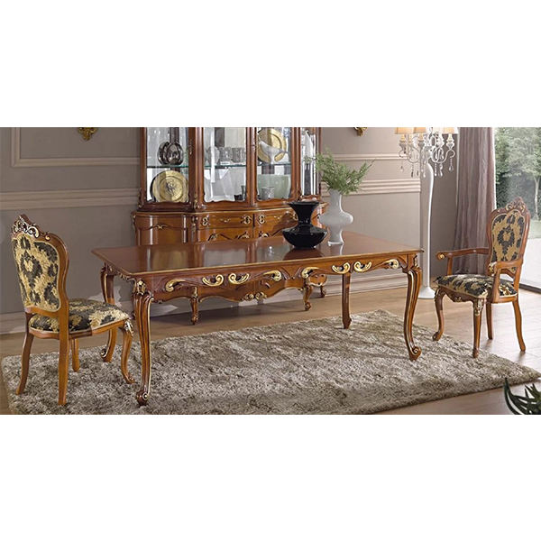 โต๊ะอาหารไม้เนื้อแข็งสไตล์ยุโรปโบราณ เฟอร์นิเจอร์ห้องอาหารไม้มะฮอกกานีคลาสสิก จากผู้ผลิตในอินโดนีเซีย