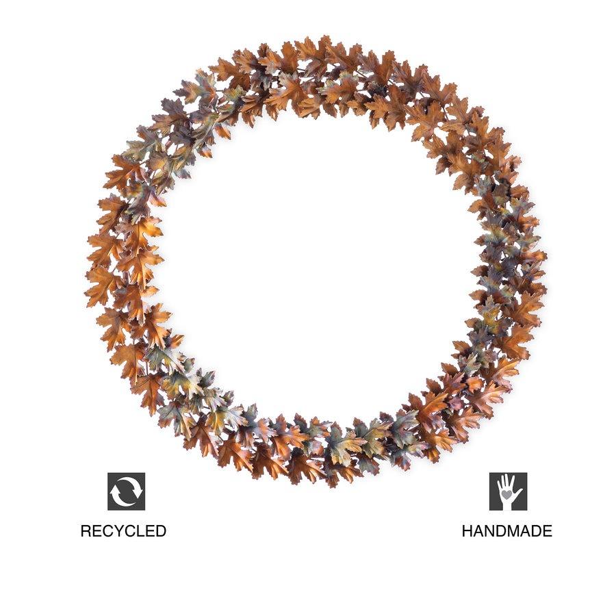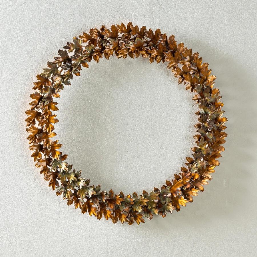 พวงหรีดใบไม้โอ๊คโบราณสำหรับตกแต่งผนังในฤดูใบไม้ร่วง ทำจากโลหะ สีน้ำตาลแบบชนบท เหมาะสำหรับตกแต่งบ้าน โรงแรม สำนักงาน