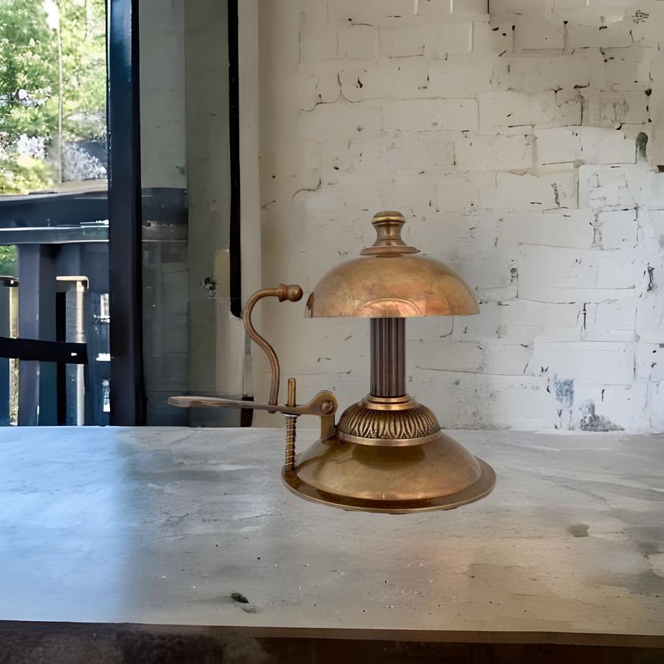 กระดิ่งบริการทองเหลืองแบบโบราณ พร้อมแท่นตั้ง สำหรับตกแต่งสำนักงาน ร้านอาหาร หรือแผนกต้อนรับ เสียงดังชัดเจน