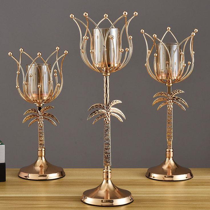 เชิงเทียนโลหะแบบโบราณสำหรับจุดเทียนและตกแต่งบ้าน ชุดเชิงเทียนตกแต่งสวยงาม