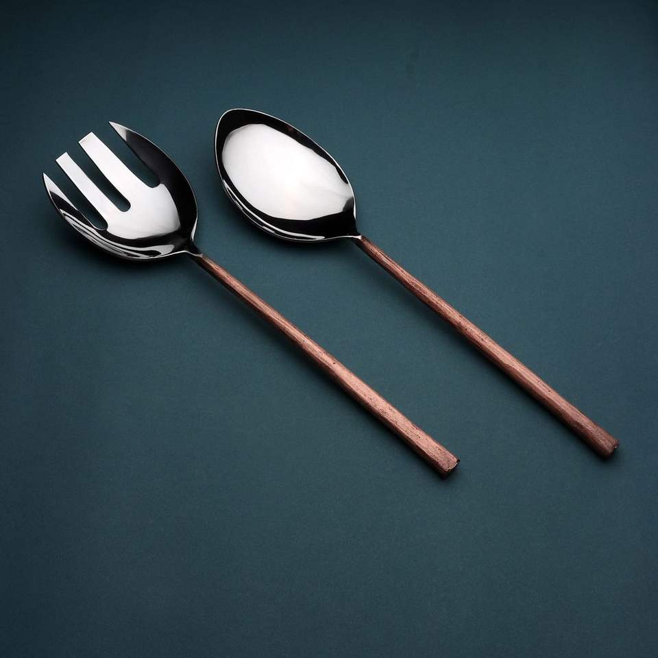 ช้อนและส้อมเสิร์ฟสลัดโลหะเคลือบผิวแบบโบราณ สำหรับการจัดโต๊ะอาหารสไตล์วินเทจและการจัดเลี้ยงที่บ้านอย่างหรูหรา