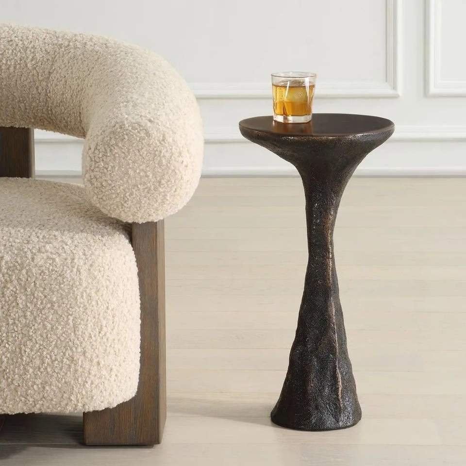 โต๊ะข้างโลหะตกแต่งสไตล์โบราณ พร้อมพื้นผิวงานฝีมือและลุควินเทจสำหรับตกแต่งบ้านสไตล์คลาสสิก