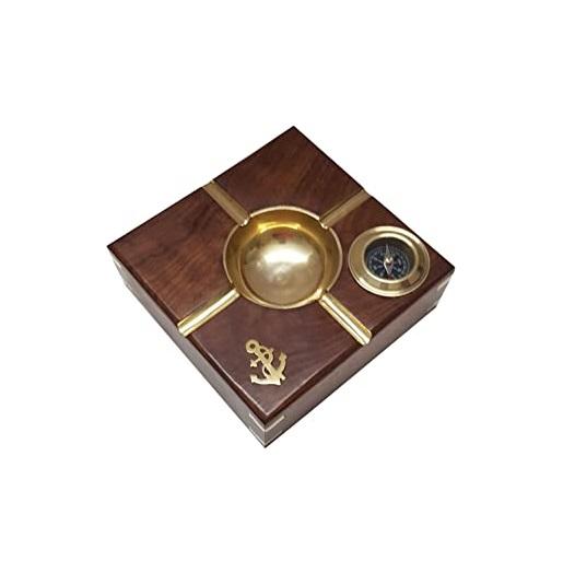 ที่เขี่ยบุหรี่ทะเลทำจากไม้โลหะเคลือบแบบโบราณพร้อมรายละเอียดเชือกเหมาะสำหรับเป็นของขวัญให้กับชาวเรือและของตกแต่งทางทะเล