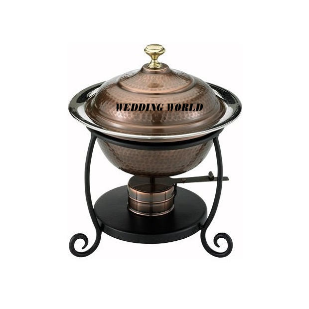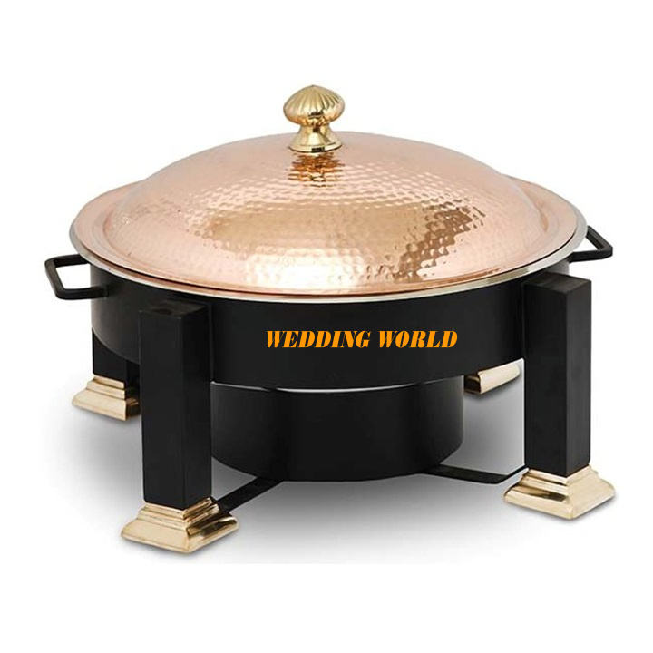 จานอุ่นอาหารทำจากทองแดงแบบสำเร็จรูปสำหรับทำอาหารจานโลหะอุ่นอาหารรูปทรงกลมดีไซน์แบบโบราณ