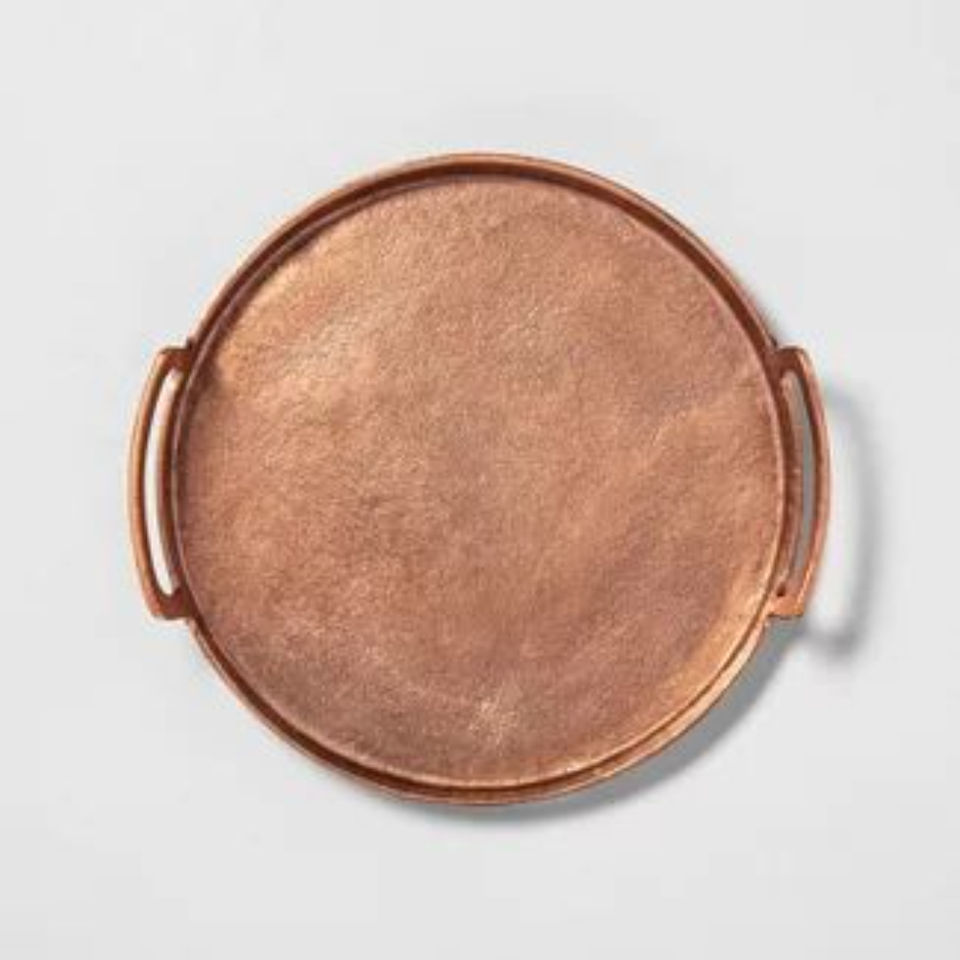 ถาดทองแดงโบราณทรงสี่เหลี่ยมผืนผ้า ถาดเสิร์ฟอาหารสไตล์วินเทจ สำหรับตกแต่งบ้าน ห้องครัว และโรงแรม