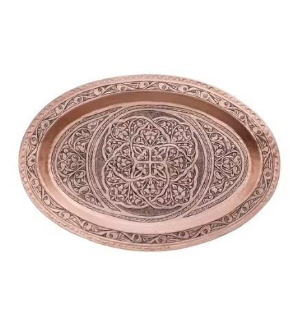 ถาดทองแดงทำเสร็จแบบโบราณถาดเสิร์ฟทรงรีสไตล์วินเทจพร้อมเทคนิคขัดเงาแบบธรรมชาติถาดที่มีความต้องการสูง