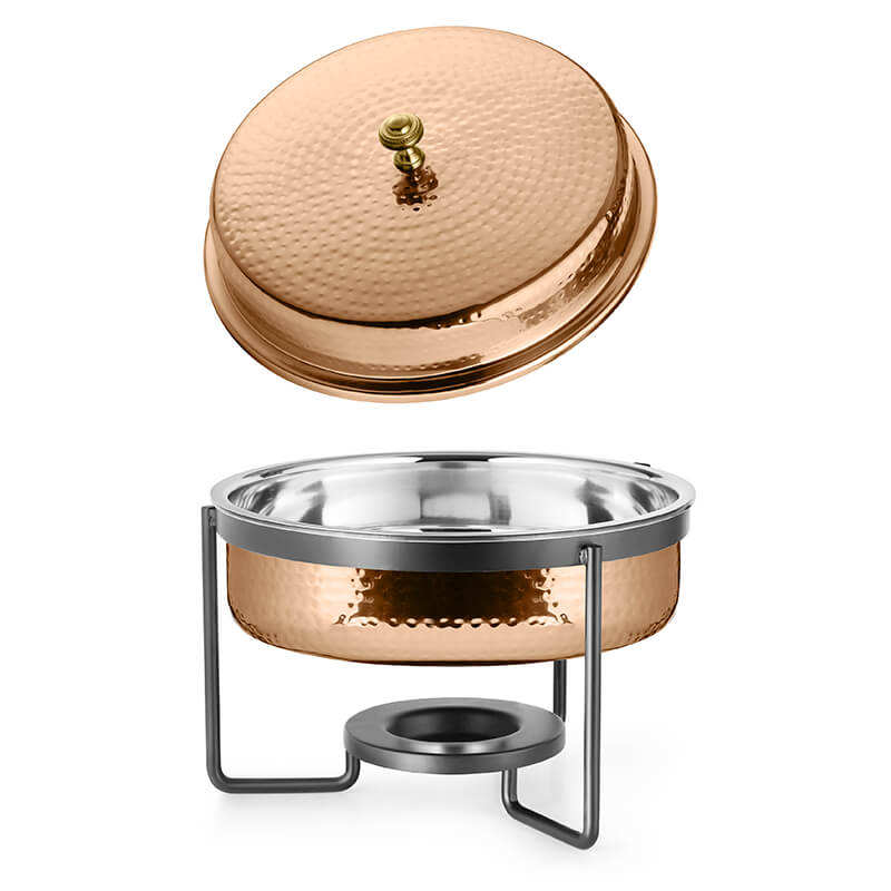 ที่อุ่นอาหารจานร้อนสำหรับจัดเลี้ยงบุฟเฟ่ต์อาหารจานร้อนทำจากทองแดงดีไซน์ไม่เหมือนใครแบบโบราณ