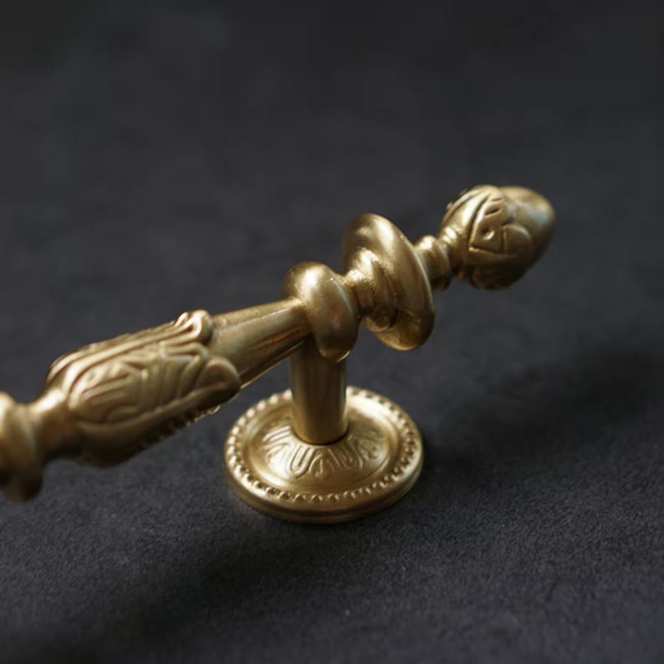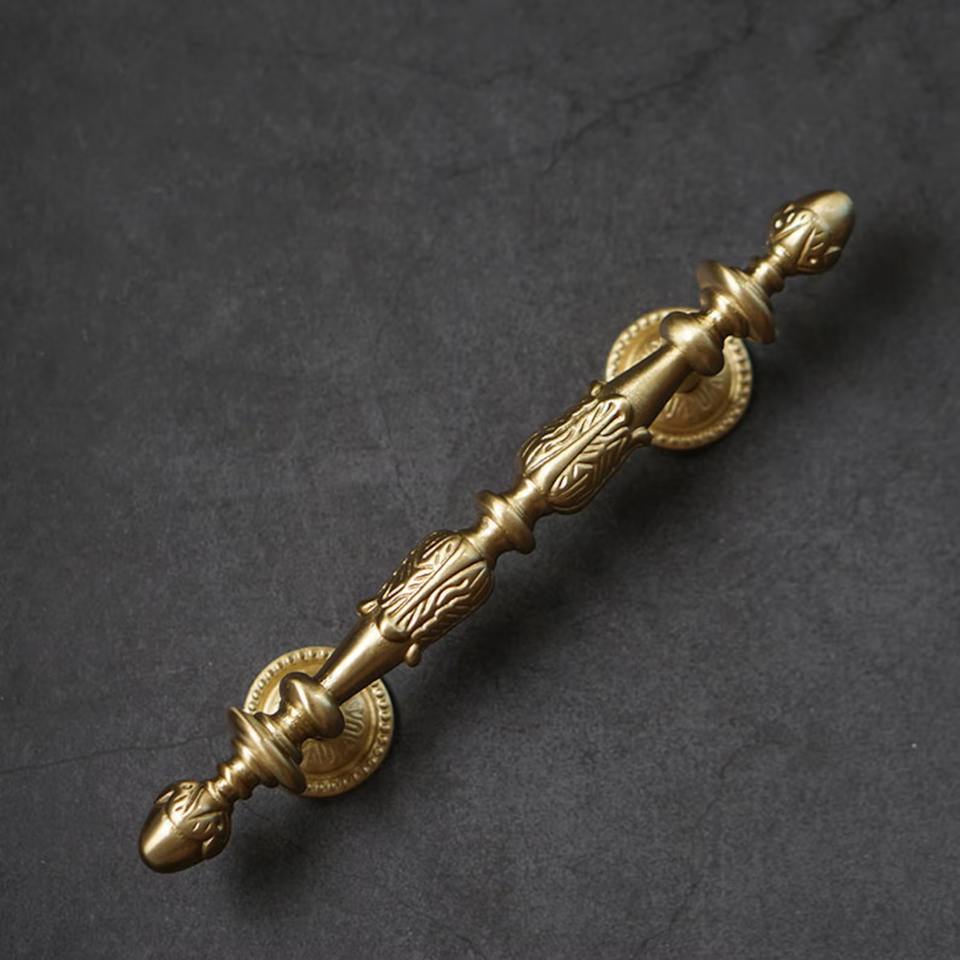 มือจับโลหะใบไม้สีทองลายดอกไม้โบราณอุปกรณ์ตกแต่งวินเทจสำหรับประตูทางเข้าหลักและดึงสองประตูจากอินเดีย