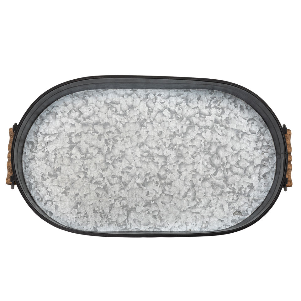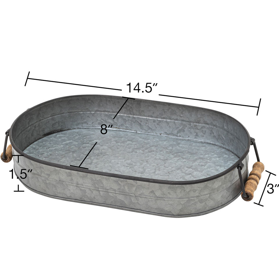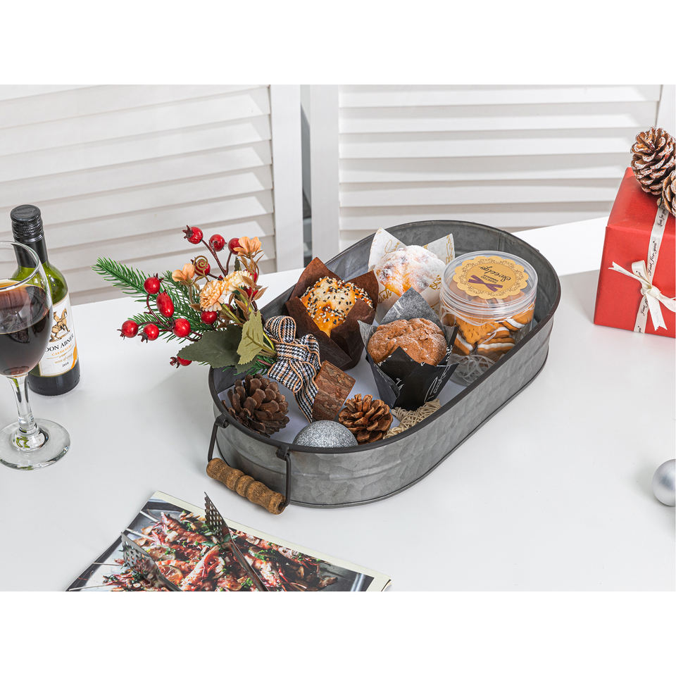 Antique Galvanized Metal Oval Shape Food Serving Tray With Wood Handle for Home Hotel Snacks Drinks Serving Trays