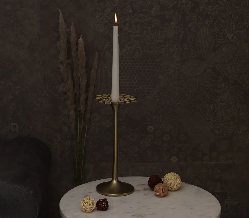 Antique Glass Candle Holders Home Decorative Aluminum Taper Candle Holder with Matt Nickel Plating for Christmas