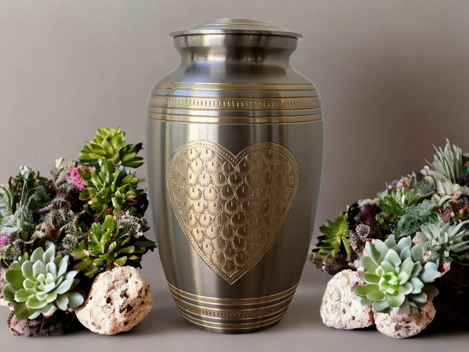โกศบรรจุอัฐิทองเหลืองเคลือบทองโบราณ รูปหัวใจสีทองขนาดใหญ่ จากผู้ผลิตโดยตรง สำหรับตกแต่งงานศพและจัดงานไว้อาลัย