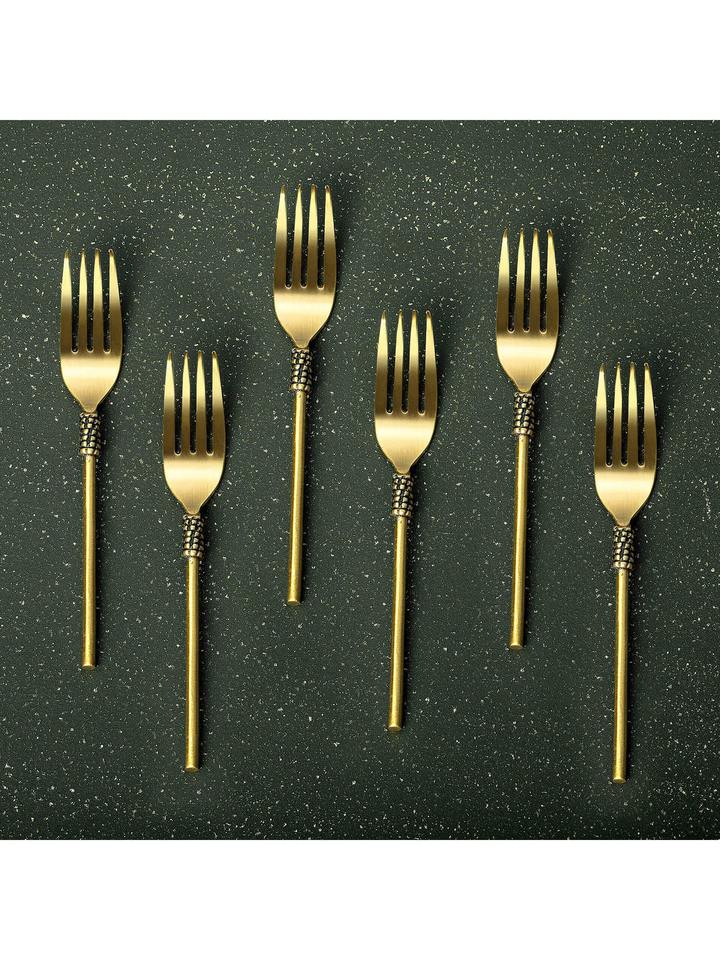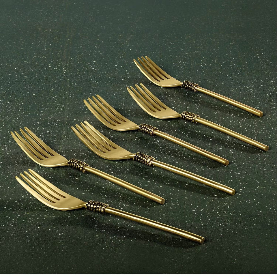 Antique Gold Finished Fork Set With Beaded Handle Design Premium Flatware For Luxury Dining Events Kitchen And Festive Tableware