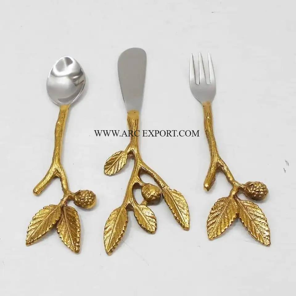 ช้อนสแตนเลสลายดอกไม้ด้ามจับสีทองโบราณ สำหรับงานแต่งงานและของขวัญ วัสดุโลหะ