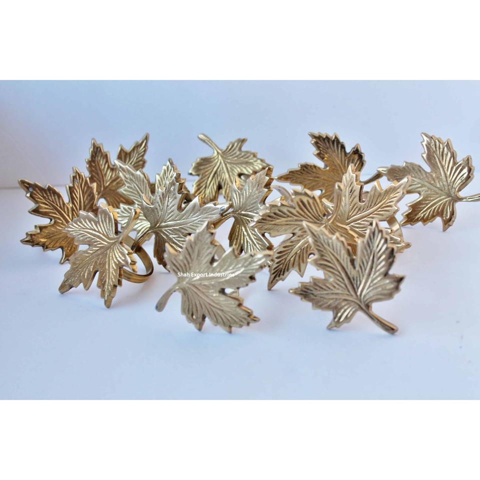 แหวนผ้าเช็ดปากรูปใบเมเปิ้ลสีทองแบบโบราณที่ใส่ผ้าเช็ดปากโลหะหรูหราสำหรับงานแต่งงานและงานอีเวนต์พิเศษของตกแต่งโต๊ะอาหารค่ำ