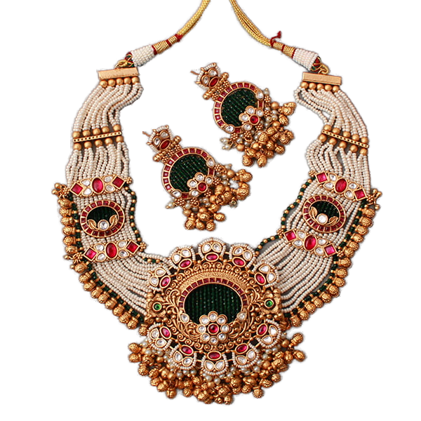 ชุดเครื่องประดับอัญมณีชุบทองโบราณ สร้อยคอหลากสี ประดับเพชรซิคอน สไตล์วินเทจ ต่างหูคู่ ตกแต่งด้วยงานคุนดัน