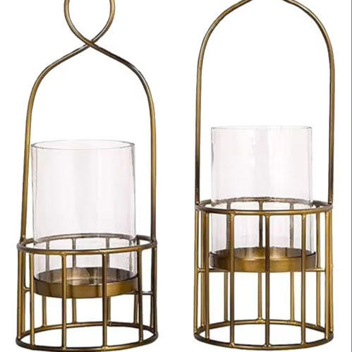 Antique Gold Finish Candle Stand of Metal in Basket Shape Set of 2 for Home Decor