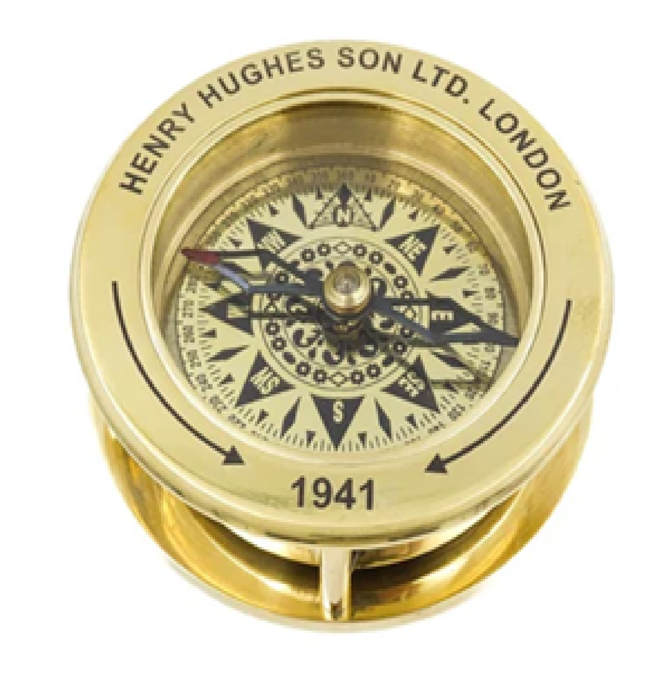 เข็มทิศกระเป๋าทองเหลืองโทนสีทองโบราณมีเครื่องหมาย "Henry Hughes SON Ltd. London 1941" สำหรับนักสะสมในราคาขายส่ง