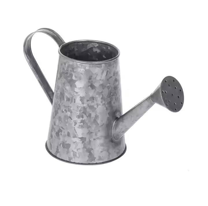 บัวรดน้ำดีบุกชุบสังกะสีของตกแต่งบ้านทำจากโลหะสีเทาโบราณสำหรับปลูกต้นไม้ในสวนแบบชนบทและงานฝีมือ