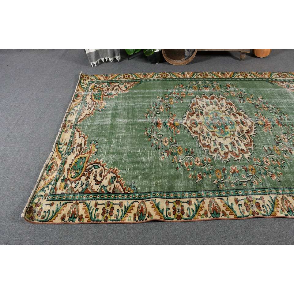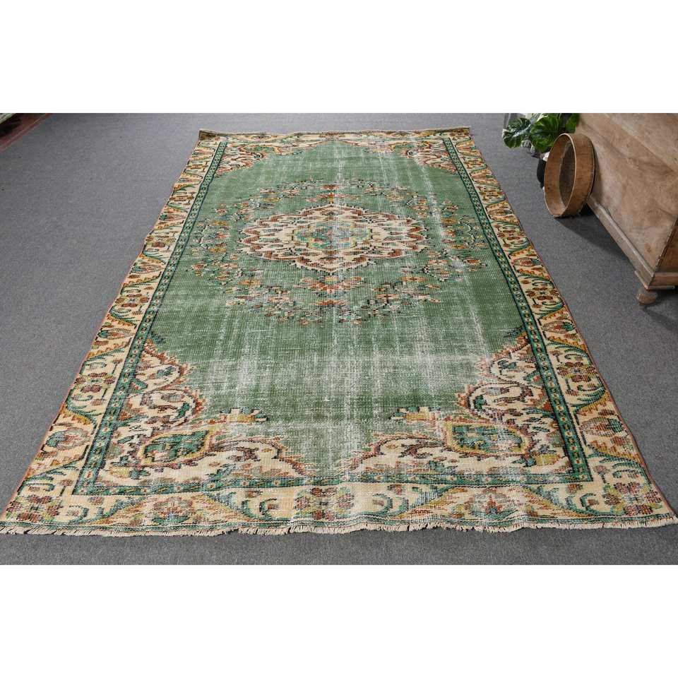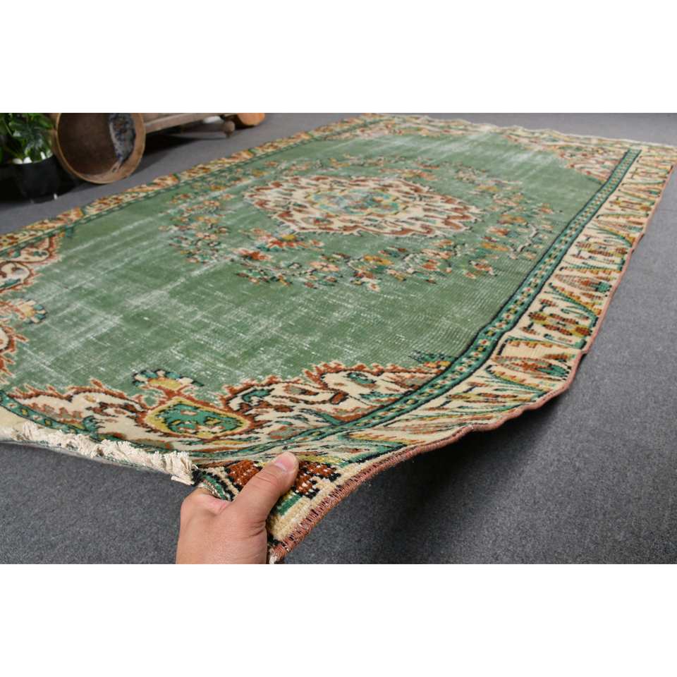 พรมทอแบบแบนทำด้วยผ้าขนสัตว์สีเขียวโบราณขนาด5,9 x 9,3ft พรมตุรกีแบบเย็บปะติดสำหรับห้องนั่งเล่นห้องโถงน้ำยางตกแต่ง