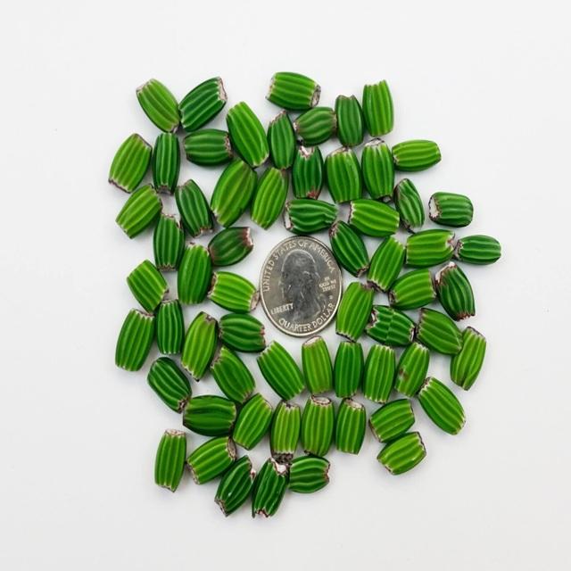 ลูกปัดแก้วทรงรีสีเขียวโบราณสำหรับทำการค้าชนเผ่าลูกปัดคริสตัลทรงรีลูกปัดหลวมสำหรับทำเครื่องประดับงานหัตถกรรมลูกปัด