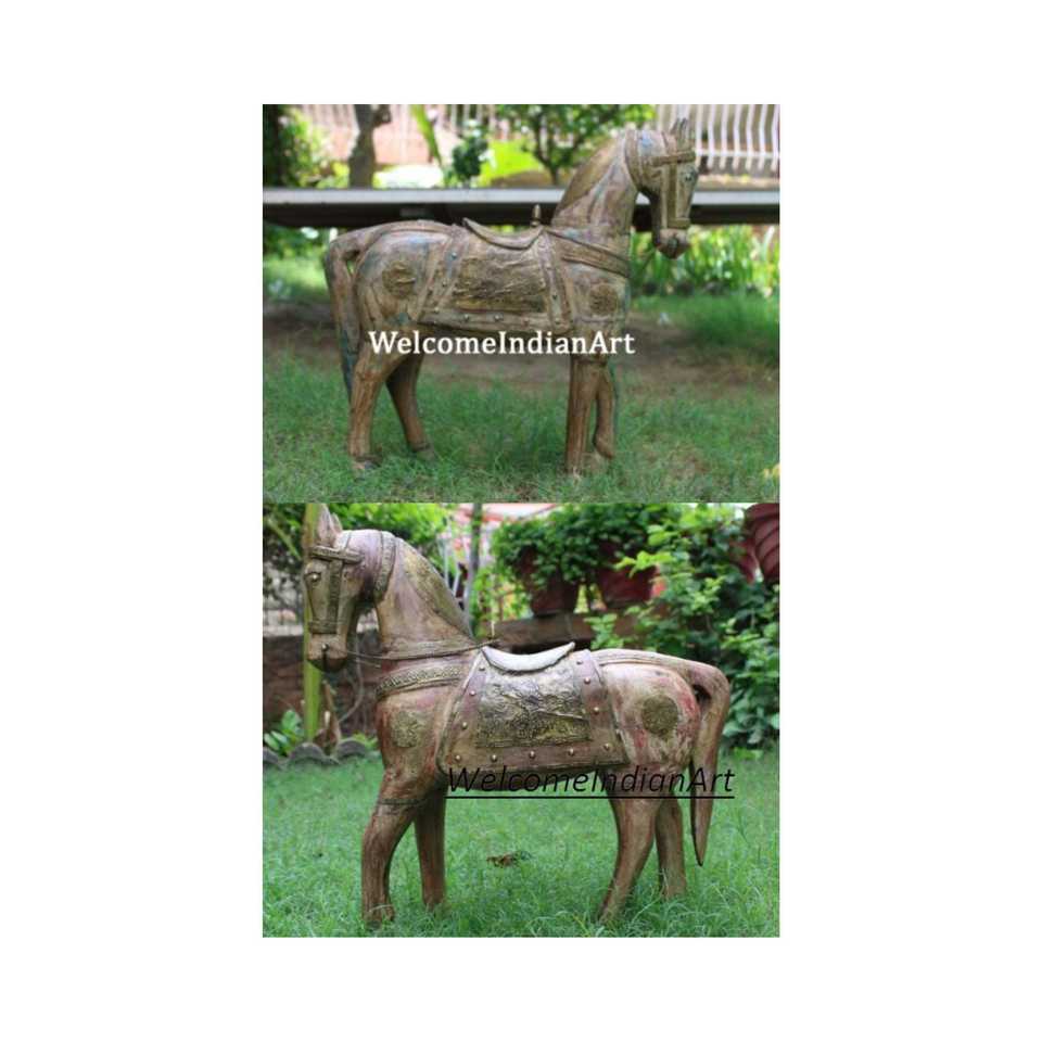 รูปปั้นม้าแกะสลักด้วยมือโบราณทาสีแบบจำลอง1