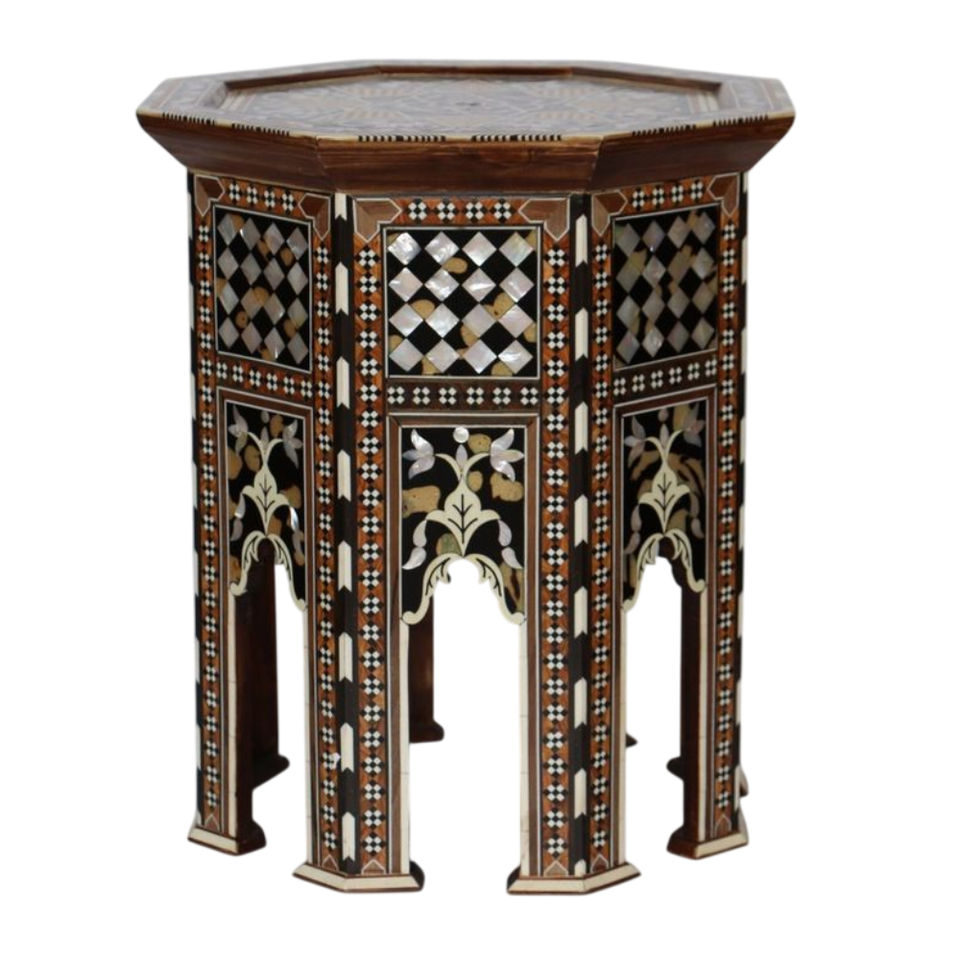 โต๊ะข้างไม้แกะสลักสไตล์โมร็อกโกโบราณ ลายเรขาคณิตแบบอิสลาม สำหรับตกแต่งบ้าน ลดราคา