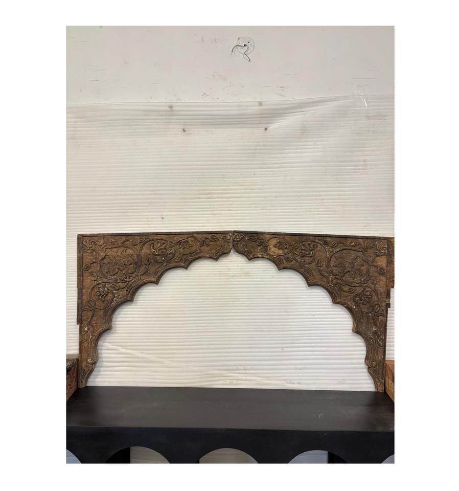 แผงโค้งไม้แกะสลักโบราณ | ของตกแต่งผนังห้องนอนสไตล์มุกุฎราชวงศ์อินเดียโบราณ เฟอร์นิเจอร์บ้านที่ทนทาน