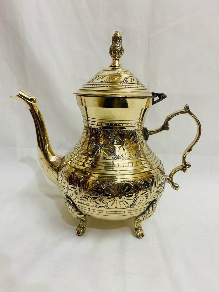 กาต้มน้ำชาดีไซน์แกะสลักด้วยมือแบบโบราณหม้อชาทำจากทองเหลืองขนาดพิเศษ