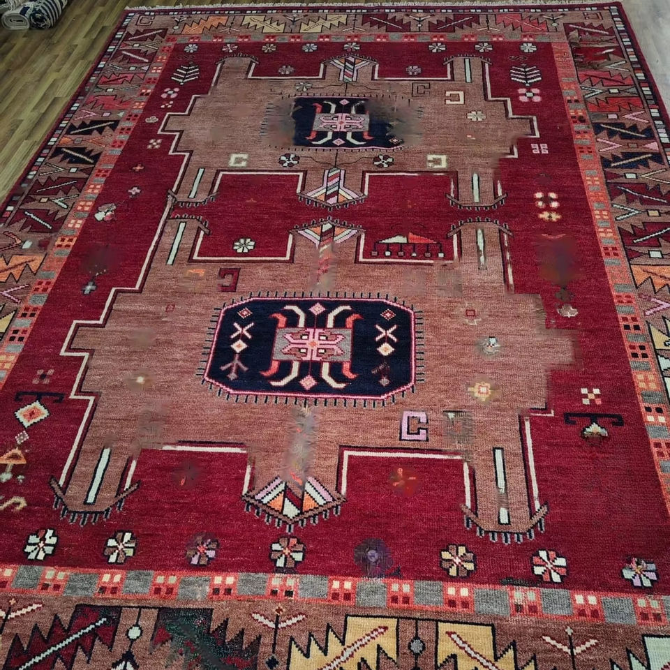 พรมคอตตอนถักด้วยมือแบบโบราณชุดพรมสวดมนต์สีแดง9X13สำหรับบ้านพรมทอพื้นที่สำหรับห้องนั่งเล่น