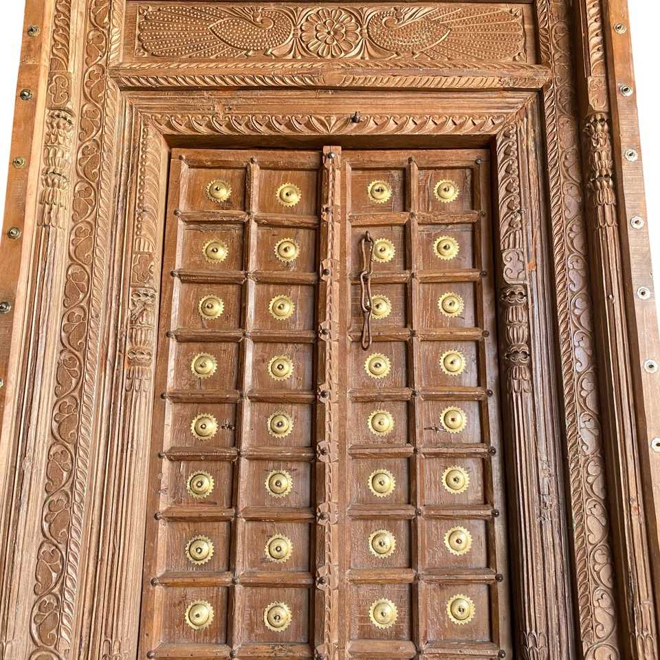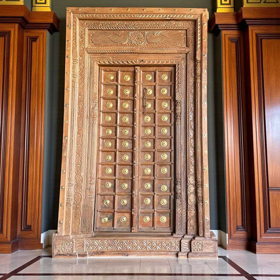 ประตูไม้เนื้อแข็งโบราณ งานฝีมือแกะสลักลายแบบดั้งเดิม ผลิตจากราชสถาน เหมาะสำหรับใช้ในบ้าน สำนักงาน และห้องนอน