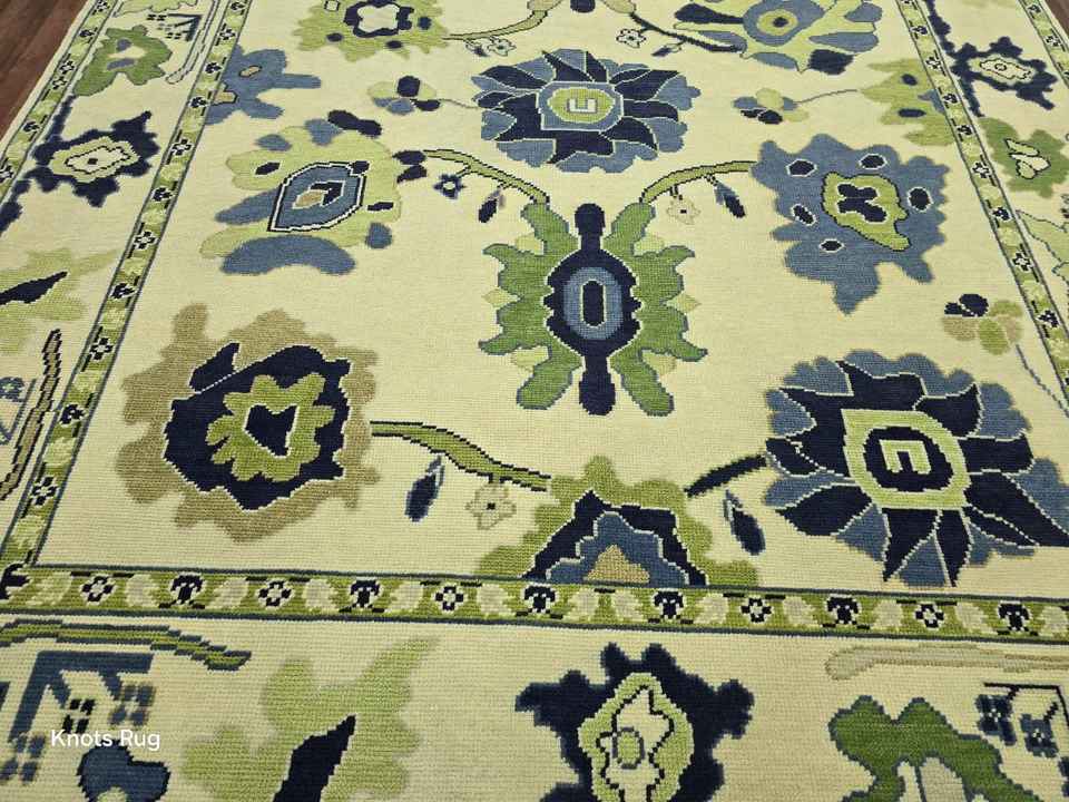 HandKnotted Oushak Rugs Persian Rugs:8x10 Beige Green Wool Oushak Rug Antique Handknitted Colorful