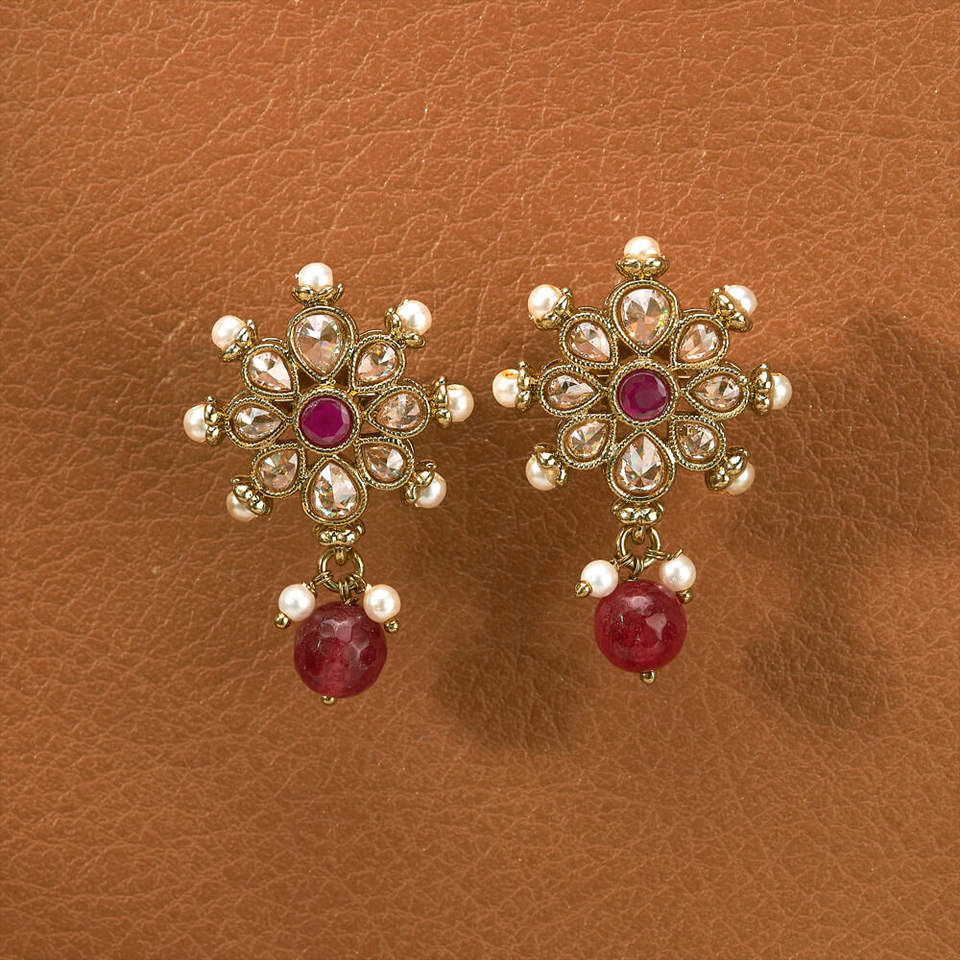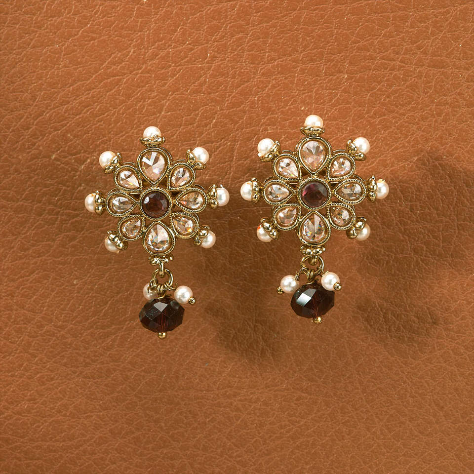ต่างหูมุกโบราณทำด้วยมืออันหรูหราพร้อมเครื่องประดับเทียมชุบด้วยเมนดี้